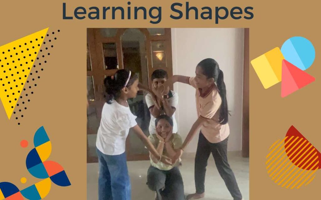 In dance I had already taught kids line formations both in column and or horizontal rows. Using this familiarity we explored the idea of parallel lines – movement taught them how these lines never converge. We experimented with angles in a variety of ways, positioning two palms for right angles, while simultaneously learning about perpendicular lines. Then we explored, experimented and moved a bit more – kids learnt to extend the line by each child extending their arms , bending the elbows to form acute and obtuse angles. A right angle wasn’t an abstract corner on a page; it was something they could feel in their shoulders.